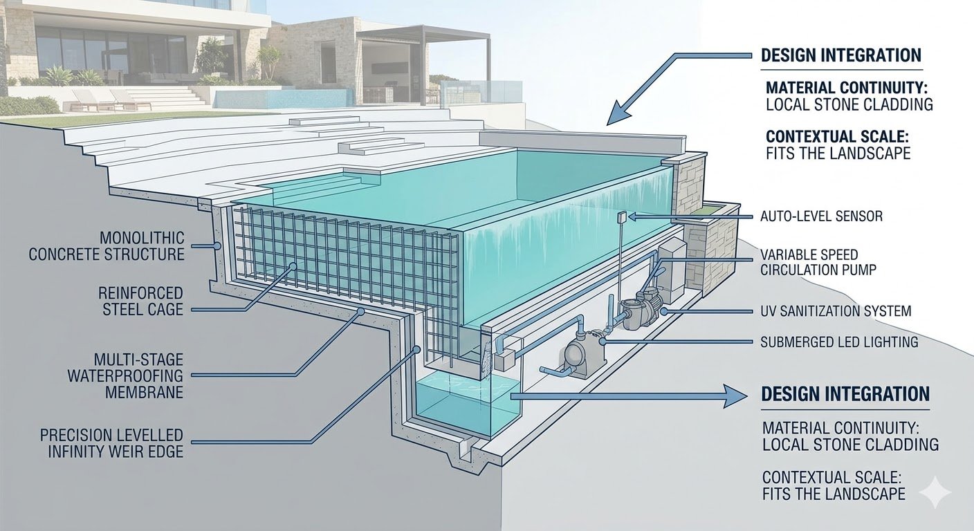 These require careful detailing to balance aesthetics, water quality, and maintenance.