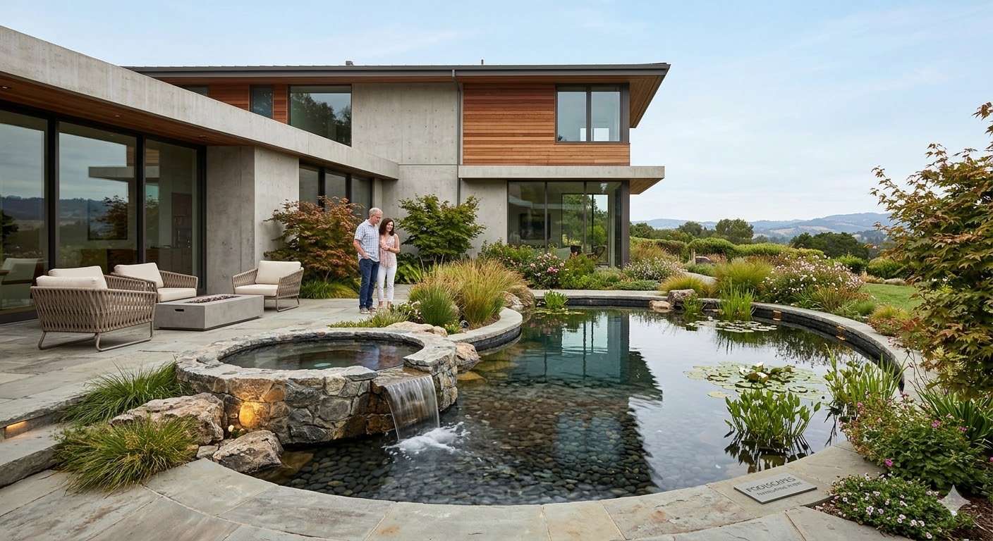 Naturalistic or geometric waterbodies designed as focal points in: